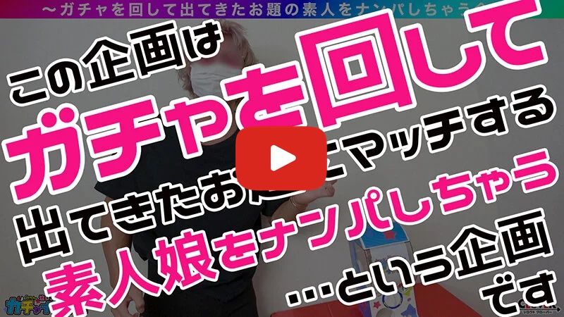 ガチナンパはもう古い!令和のナンパは『ガチャ』でしょ!ガチャを回して出てきたお題にマッチする素人娘を街角でGotcha!(捕まえる)お題は『メガネ女子』『人妻』『身長170cm以上』『Hカップ以上』など、毎回何が飛び出すかわからない!狙うはもちろん SSR(スーパー・スペシャル・レア)のドスケベ素人だ☆今回Gotchaした美女は…辛いものとガチャガチャをこよなく愛する爆乳娘のあちゃん(21歳)。